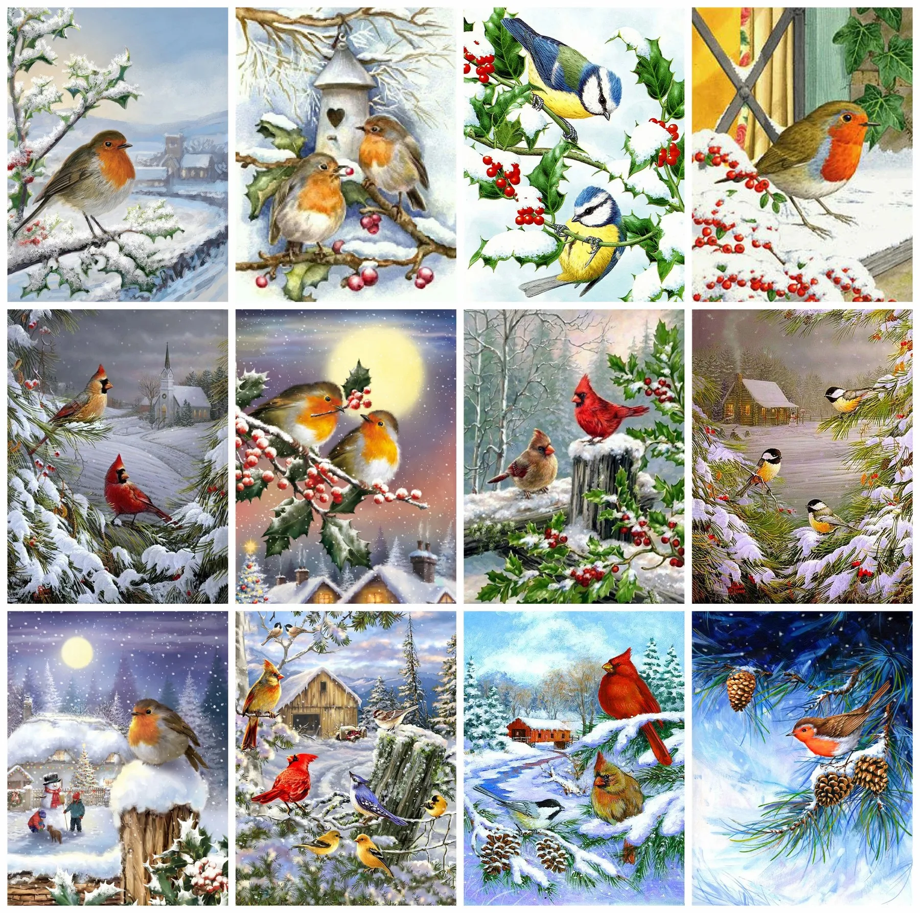Алмазная 5d картина HUACAN, мозаика с птицами, зимнее рукоделие, сделай сам, вышивка крестиком с животными, домашний декор