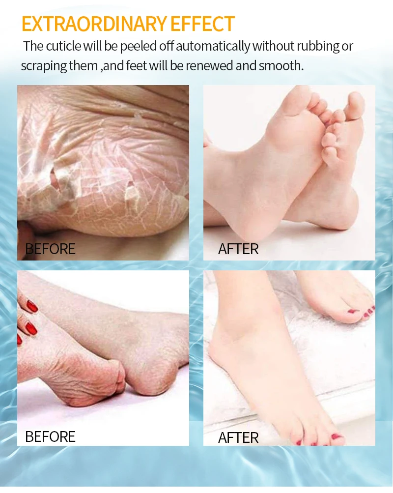 5. Большинство людей начинают очищать омертвевшую кожу после 48 часов использования, но из-за различных типов кожи кому-то может потребоваться 2-3 пары, пожалуйста, используйте маску для ног снова 48 часов позже.