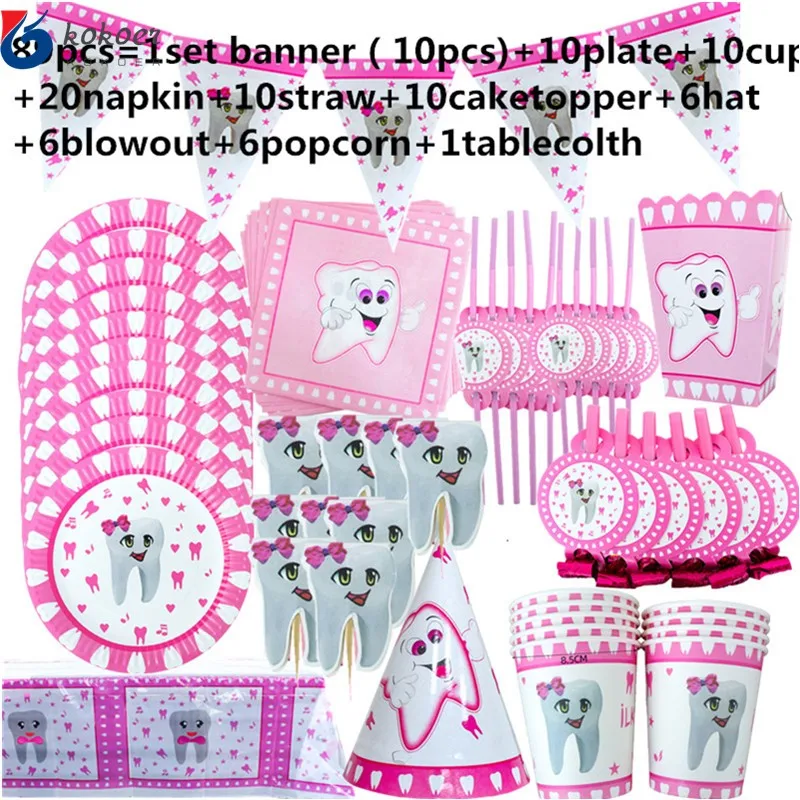 1 комплект, 20 штук, розовые декоративные столовые приборы с надписью My First Tooth, салфетки для детской вечеринки