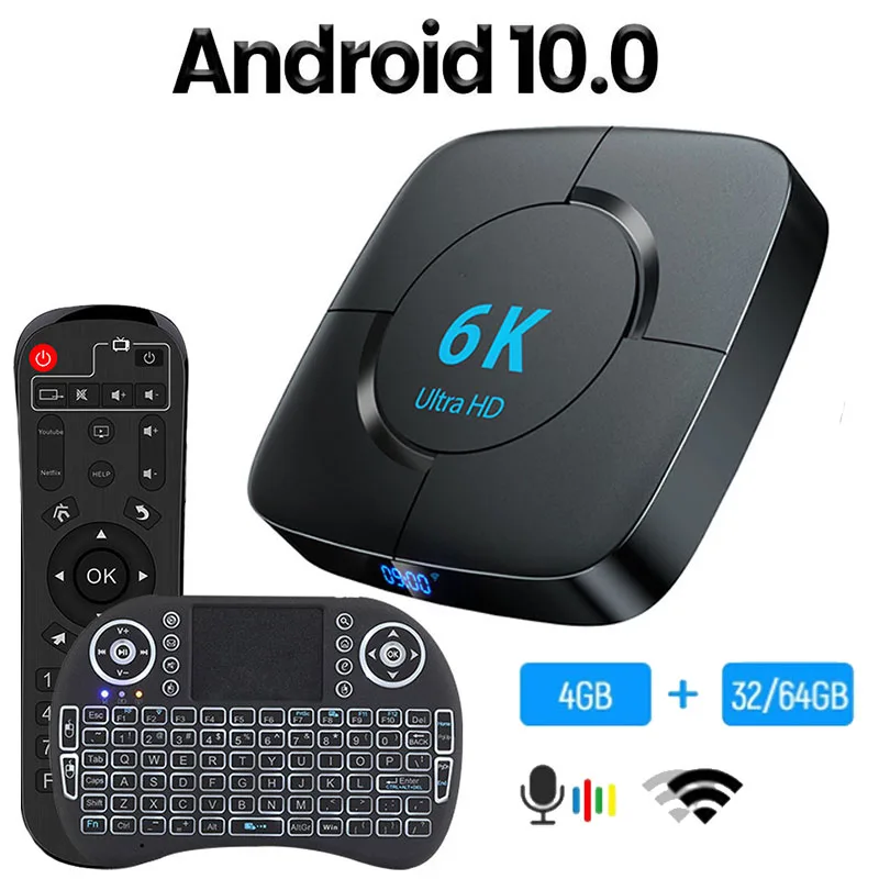 ТВ-приставка Android, 16 ГБ, 32 ГБ, 64 ГБ, 6K, голосовой помощник на Youtube, медиаплеер H.265, 3D видеоприемник, Wi-Fi, смарт-ТВ
