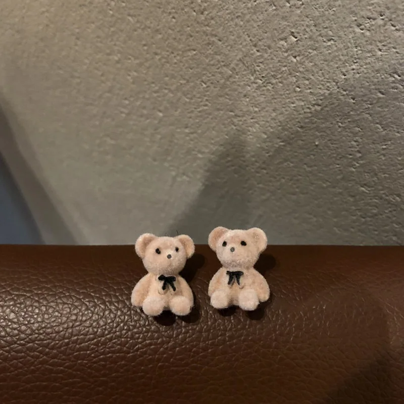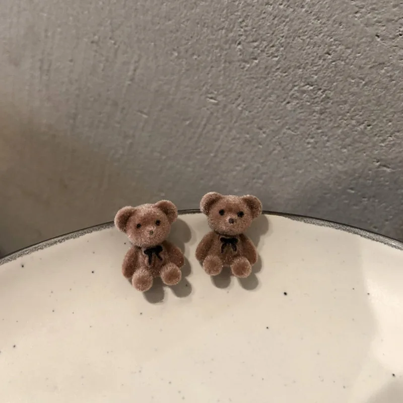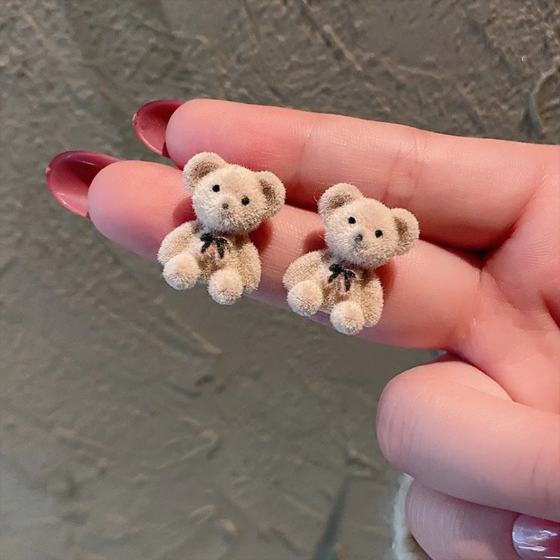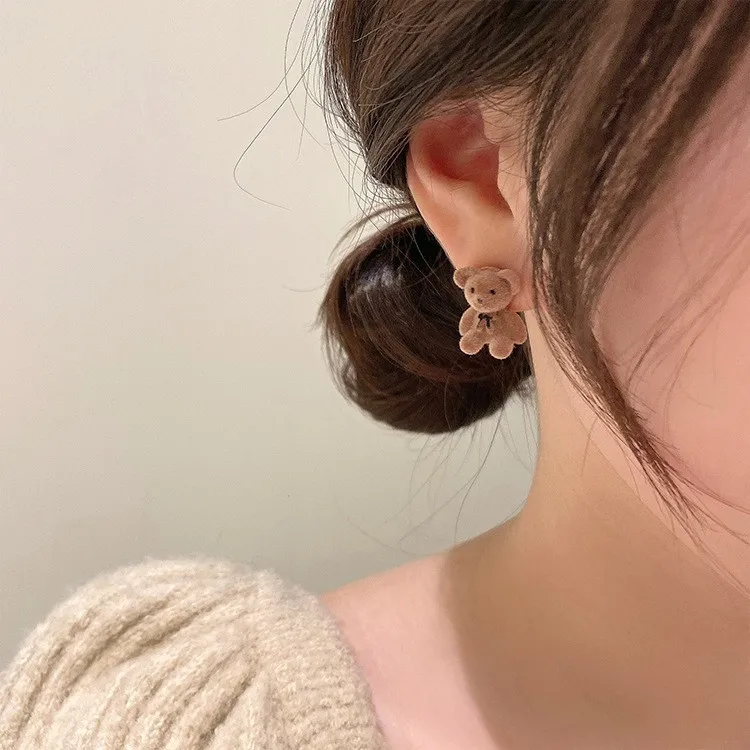 Новые корейские милые смешные плюшевые маленькие серьги-гвоздики с милым бантом медведем изящная серьга модные ювелирные изделия 2021 серьги оптовая продажа