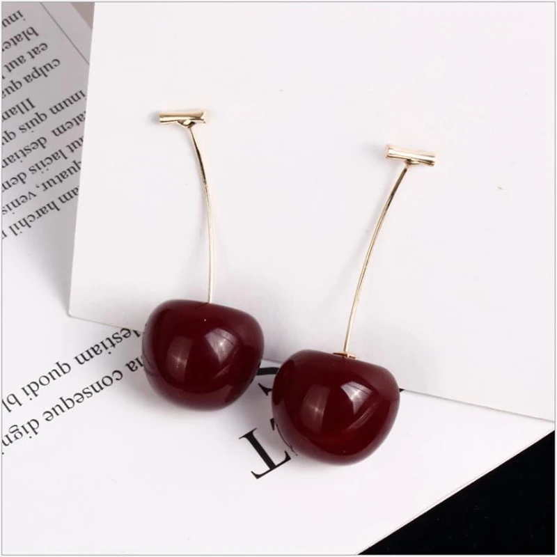 Вишневые дизайнерские серьги, Летние Стильные серьги вишневого цвет...