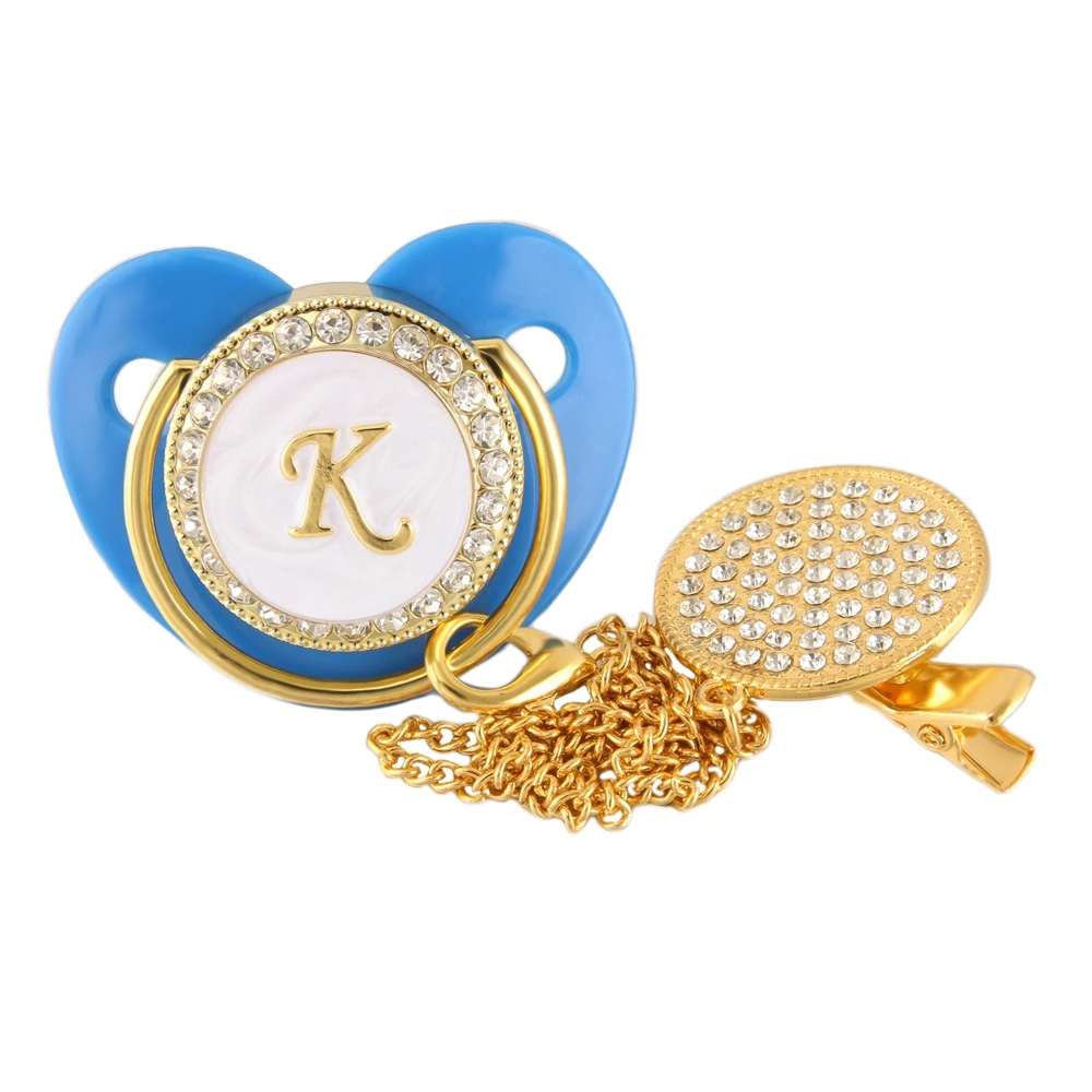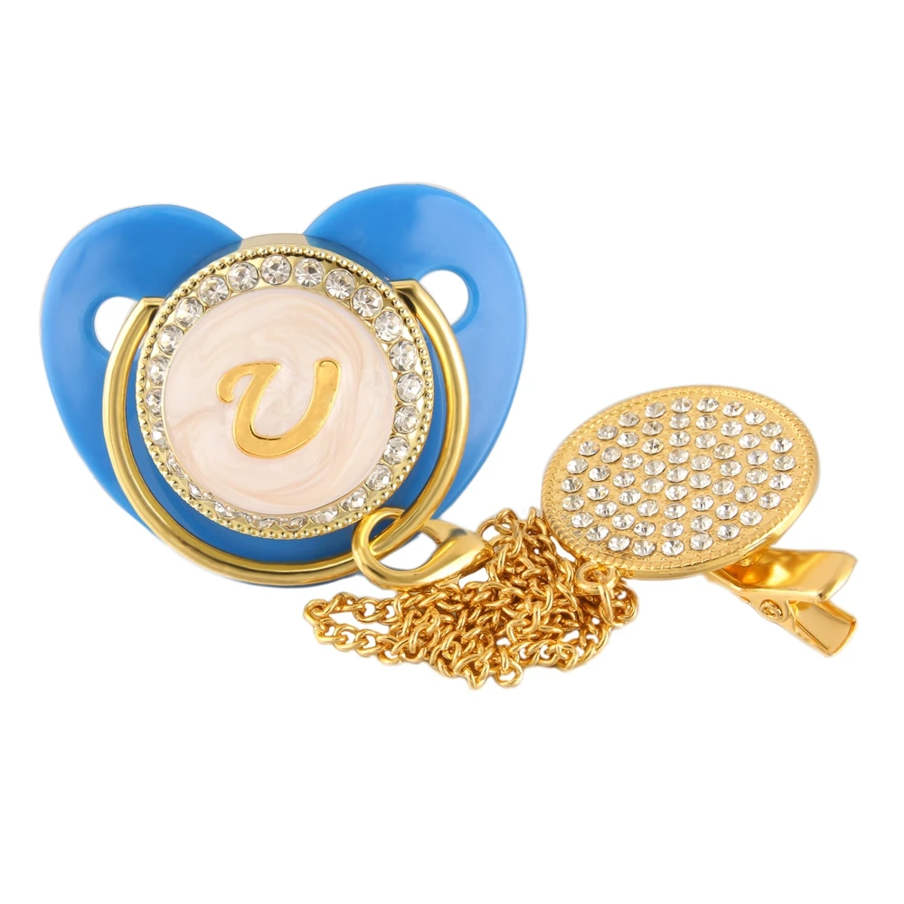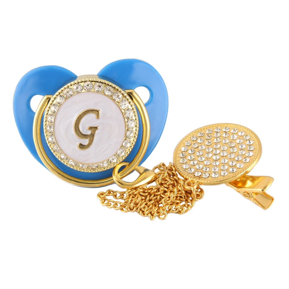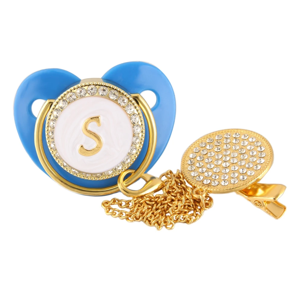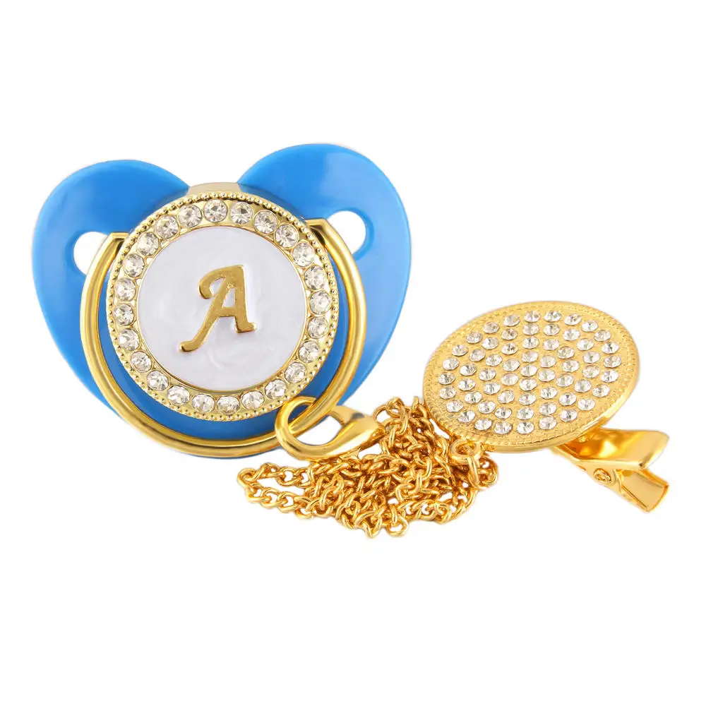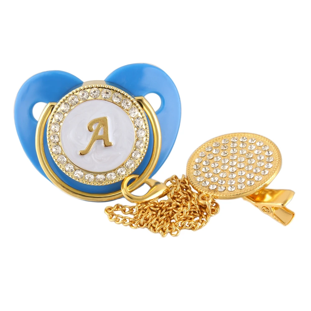 Роскошные Детские пустышки 26 букв Стразы BPA бесплатно Синий Bling пустышка для младенцев соски Chupetes Para Bebes