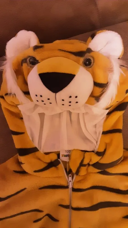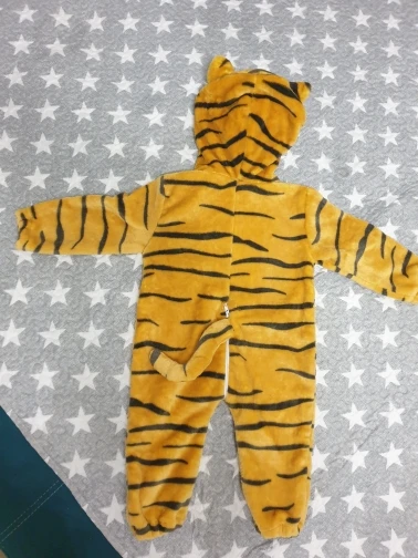 Отличный комбинезон, мы в восторге. Рост 82 брали размер 18-24. Учитывайте, что 100 - это вместе с ушами тигренка))) хлопковая подкладка только на капюшоне, к сожалению, но все равно одеваем на боди и штанишки. Малыш в костюме милейший. Цвет соответствует. Рекомендую. Теперь мы с символом года на фотосессию))))