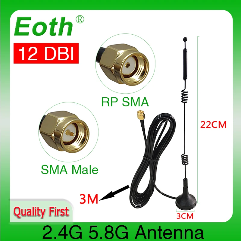 EOTH 1 2 шт. антенна 2,4g 5,8g с магнитным основанием 12dbi sma Муж...