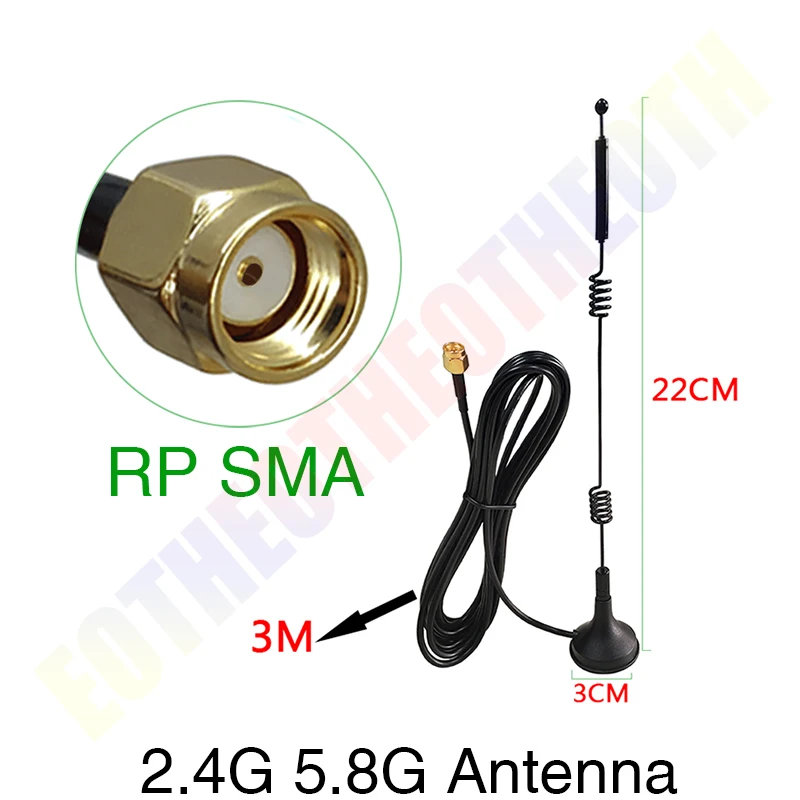 Антенна Wi-Fi Eoth, RP-SMA штекер-гнездо, с кабелем 3 м, магнитное ...