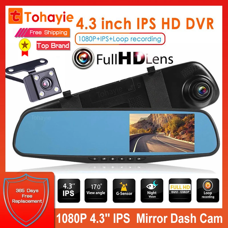 HD 1080P Автомобильный видеорегистратор Камера 4,3 дюймов IPS зеркальный видеорегистратор DVR 3 в 1 двойной объектив видеорегистратор Ночное видение 170 ° широкоугольный видеорегистратор