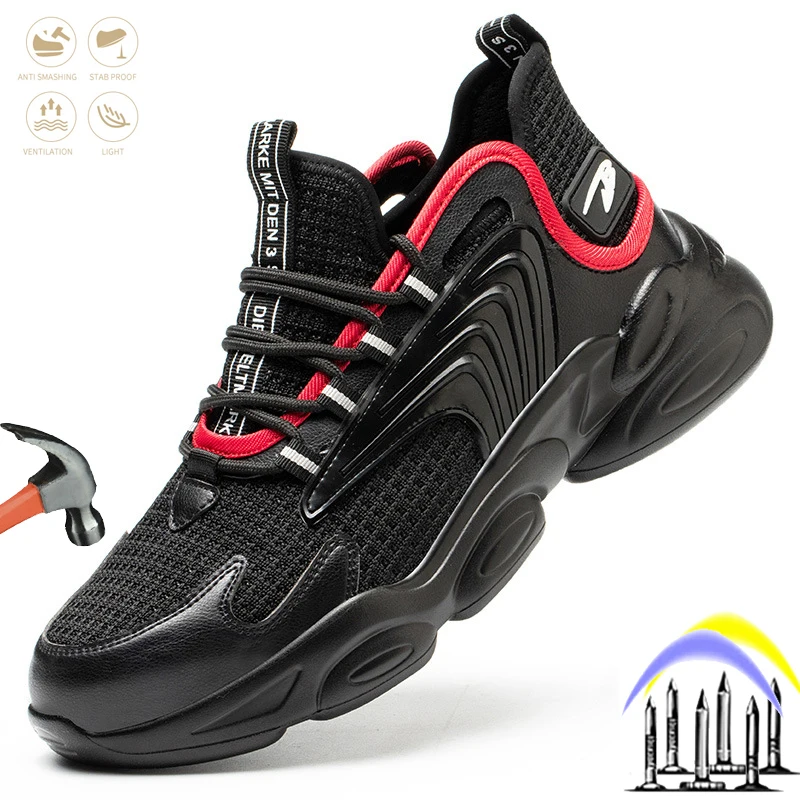 Неразрушаемые мужские защитные ботинки, рабочие ботинки со стальным носком, непрокалываемые легкие дышащие удобные кроссовки с защитой от ударов