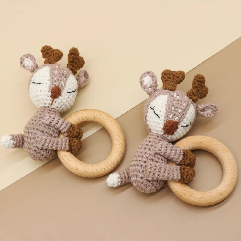 Детское деревянное кольцо для прорезывания зубов, сделай сам, вязаное крючком, животное, олень, лось, погремушка, браслет, Прорезыватель зубов для младенцев, соска для ухода за зубами, молярные игрушки