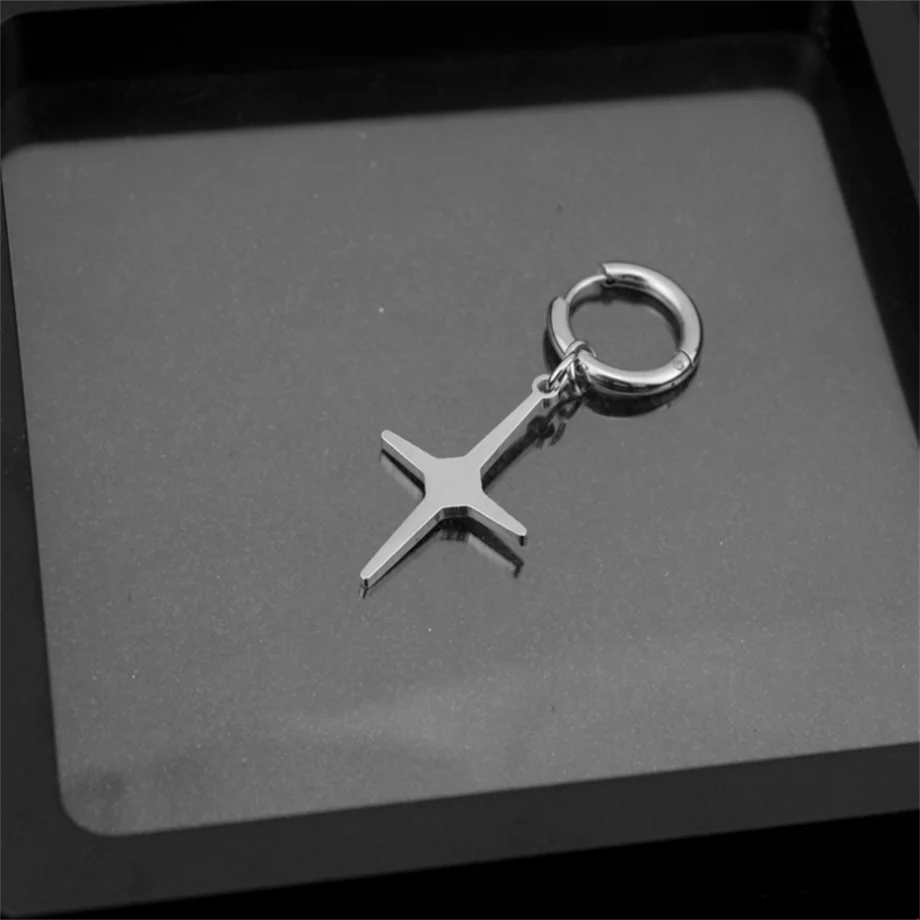 серёжки кресты американский стиль серьга крест серьги ассиметрия Новинка 2021, популярные серьги-гвоздики с крестом 1 шт. со светом звезд для пар, мужские и женские серьги, нейтральные индивидуальные серьги-клипсы