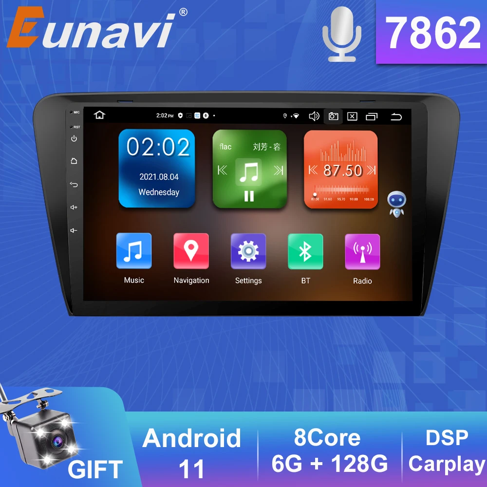Автомагнитола Eunavi DSP, 2 Din, Android 11, GPS, мультимедийный плеер для SKODA Octavia A7 III 3, 2014, 2015-2018, сенсорный экран HD 10,1 дюйма