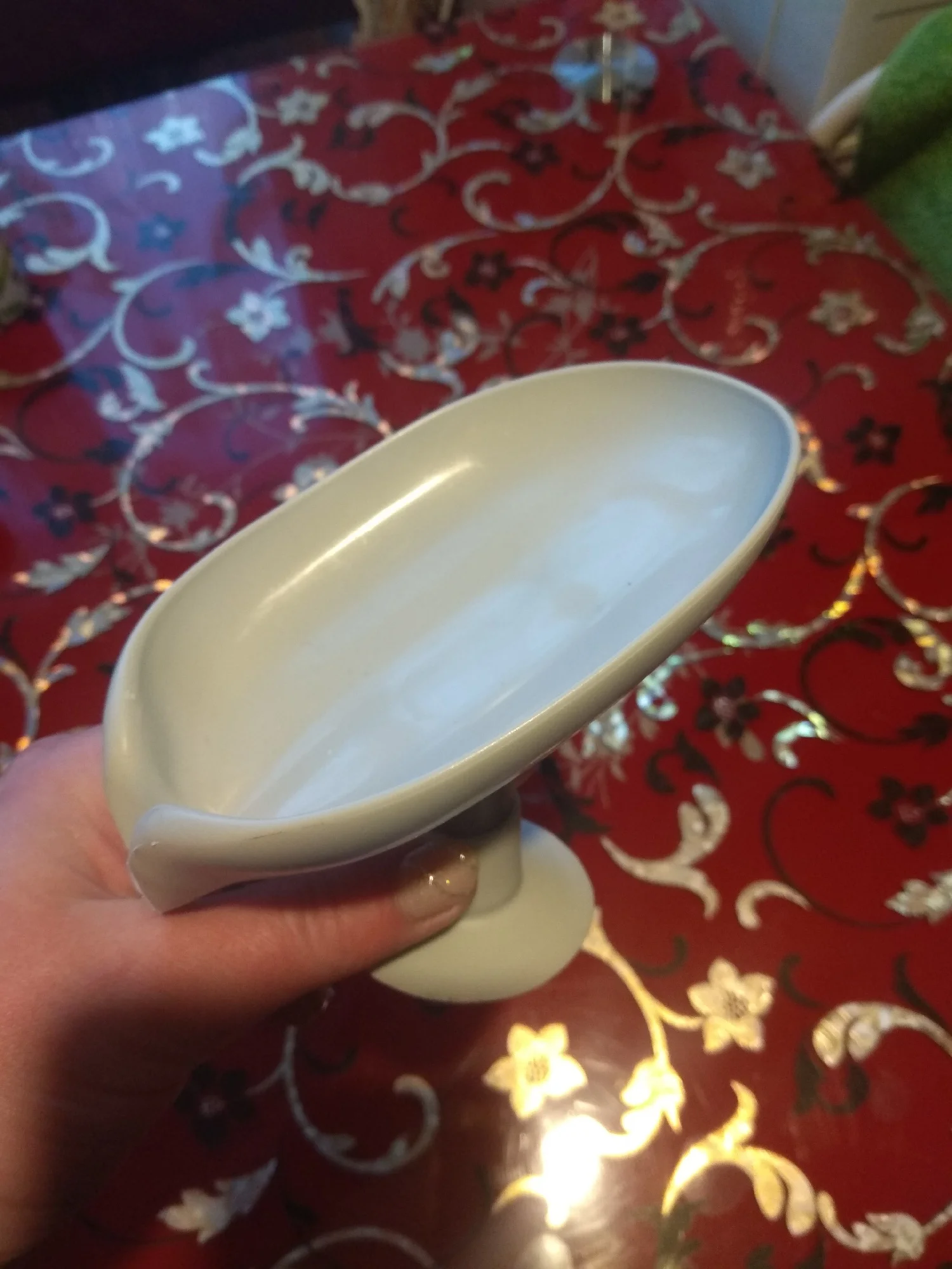 Мыльница как на фото. Дешевый пластик. Пользоваться можно. Спасибо.