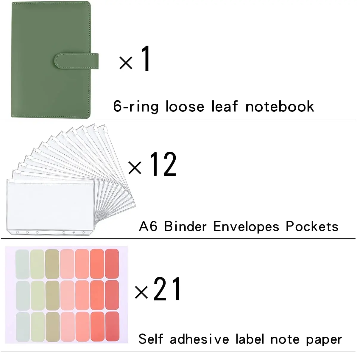Записная книжка A6 из искусственной кожи, блокнот-планировщик, система наличных конвертов для личного бюджета с 12 переплетными карманами на молнии, наклейки для этикеток