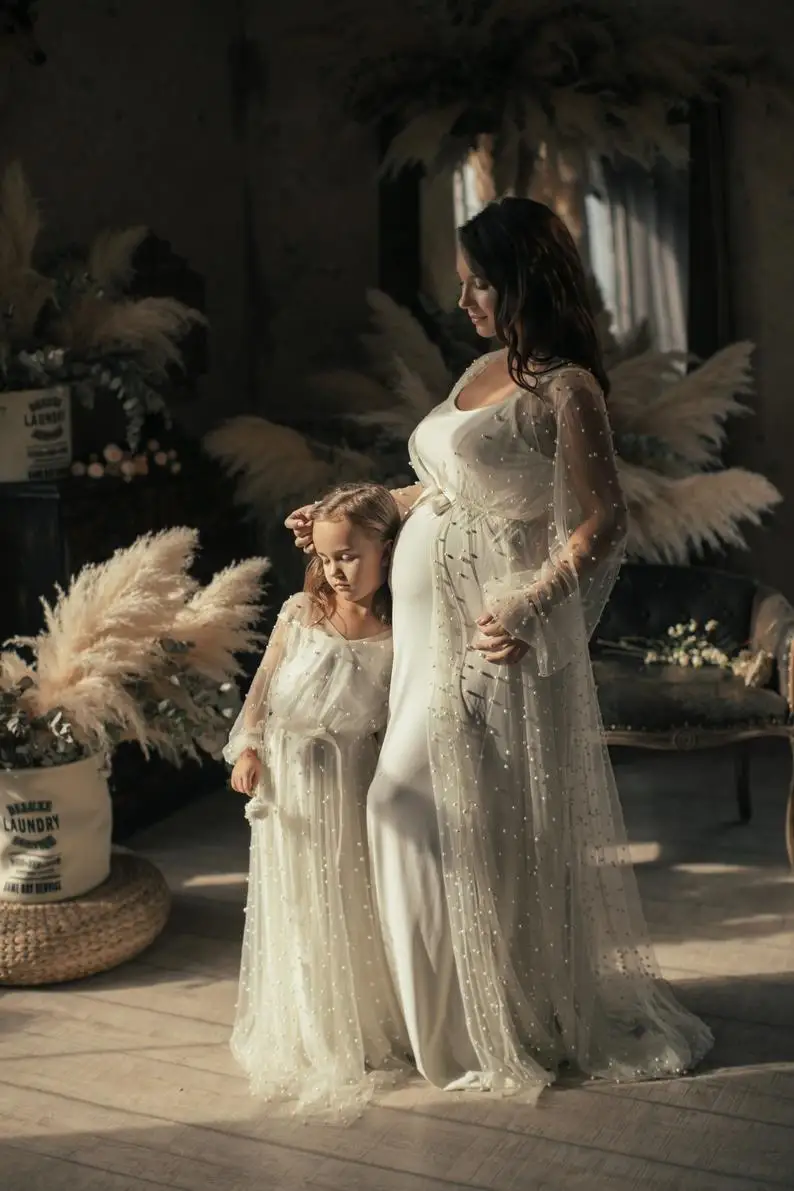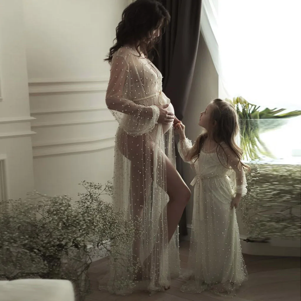 Прозрачное Тюлевое платье с жемчужинами для беременных с длинными рукавами иллюзионное платье для беременных для фотографии женское платье для фотосессии на заказ
