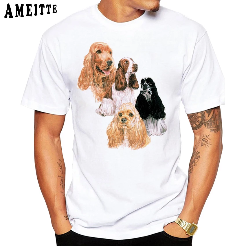 Футболка мужская, с коротким рукавом, с изображением кокер-спаниеля, в английском и американском стиле, с коллажем, в стиле хип-хоп