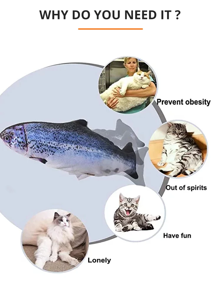 Особенности:1. Электрическая игрушка рыба-кошка: когда ваша кошка коснется игрушки, игрушка рыба-кошка автоматически двигается, качается и издаёт звук, привлекает вашу кошку к игре и кикке, и вам не придется заменять батарею.2. Реалистичная имитация рыбы: при появлении искусственных рыб используется технология 3d-печати, которая выглядит очень реалистично, благодаря которой котята держат лапы и взаимодействуют в режиме реального времени, уменьшая скуку и одиночество при выходе из дома.3. Улучшенный дизайн: наш рыбный живот был заменен на молнию. Его можно легко вытянуть, включив переключатель, чтобы предотвратить разрыв рыбы при тряске.4. Высококачественный Материал: изготовлен из хлопка и короткого плюша, мягкая текстура не повредит лапу кошки. Отлично подходит для укусов, жевания, ног и сна.5. Уникальный запах: Большинство кошек взволнованы и счастливы из-за запаха кошачьей мяты. Кошачья мята, которую мы доставляем, может облегчить разочарование и стресс котят.