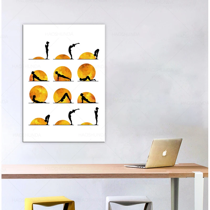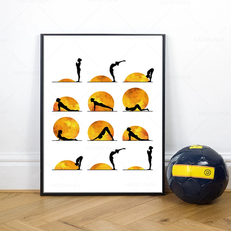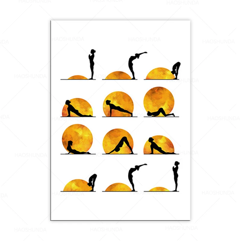 Схема для йоги Солнце Спорт плакат абстрактная стена искусство холст печать Современная декоративная картина декор для тренажерного зала