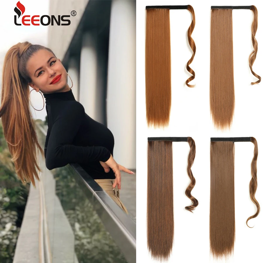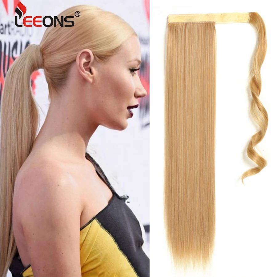 Leeons синтетический шиньон, синтетический удлинитель с зажимом для конского хвоста, длинные прямые волосы из конского хвоста, 22 дюйма, черный, коричневый