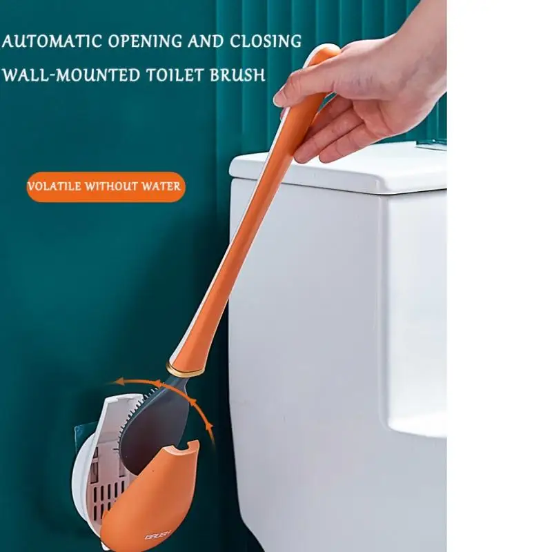 Набор чистящих щеток для ванной комнаты, силиконовая щетка, насадка, щетка для унитаза, настенное автоматическое открытие и закрытие, без мертвых углов мытья