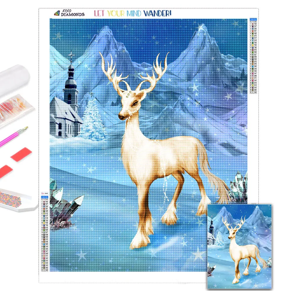 Алмазная живопись, лес, олень, 5D, сделай сам, полная Алмазная выши...