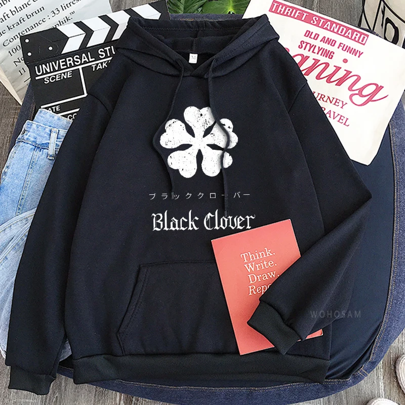 Толстовка мужская с длинным рукавом, Аниме Манга, логотип клевера, унисекс, уличная одежда в стиле хип-хоп, большие размеры, зимняя в стиле пэчворк