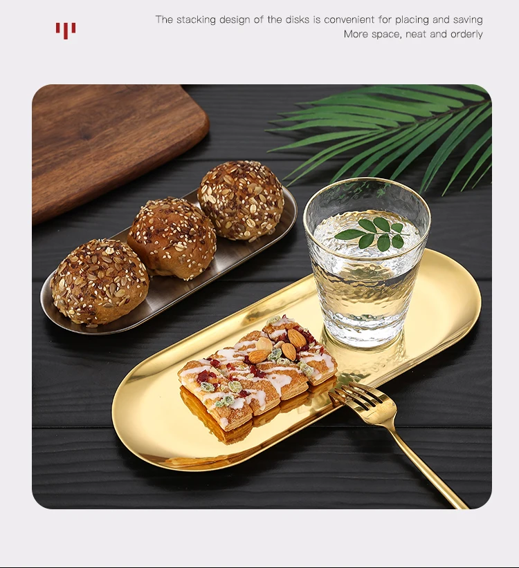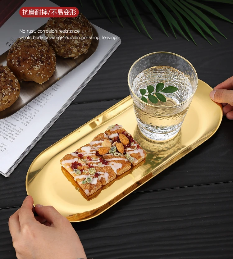 Золотая десертная тарелка из нержавеющей стали в скандинавском стиле, настенное полотенце, поднос для снэков, кухонная тарелка для западного стейка