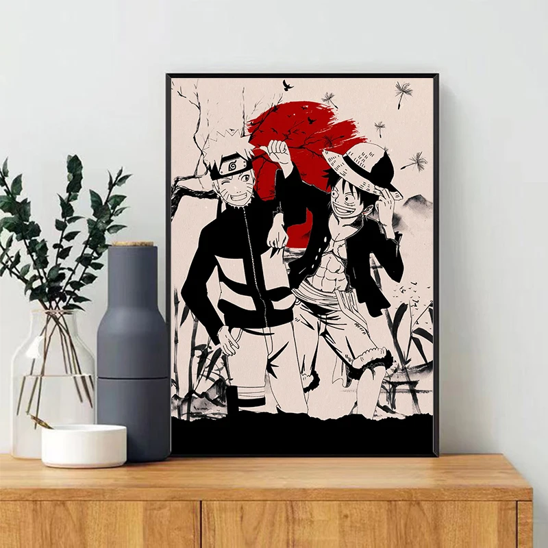 Винтажная картина Наруто и одна штука из аниме фотообои японская Ретро манга на холсте настенные принты для декора гостиной