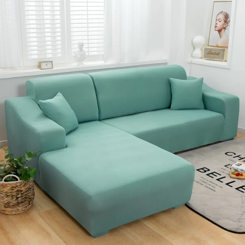 Универсальный эластичный матовый однотонный четырехсезонный комбинированный чехол на угловой диван для гостиной, подходит для 1234 человек
