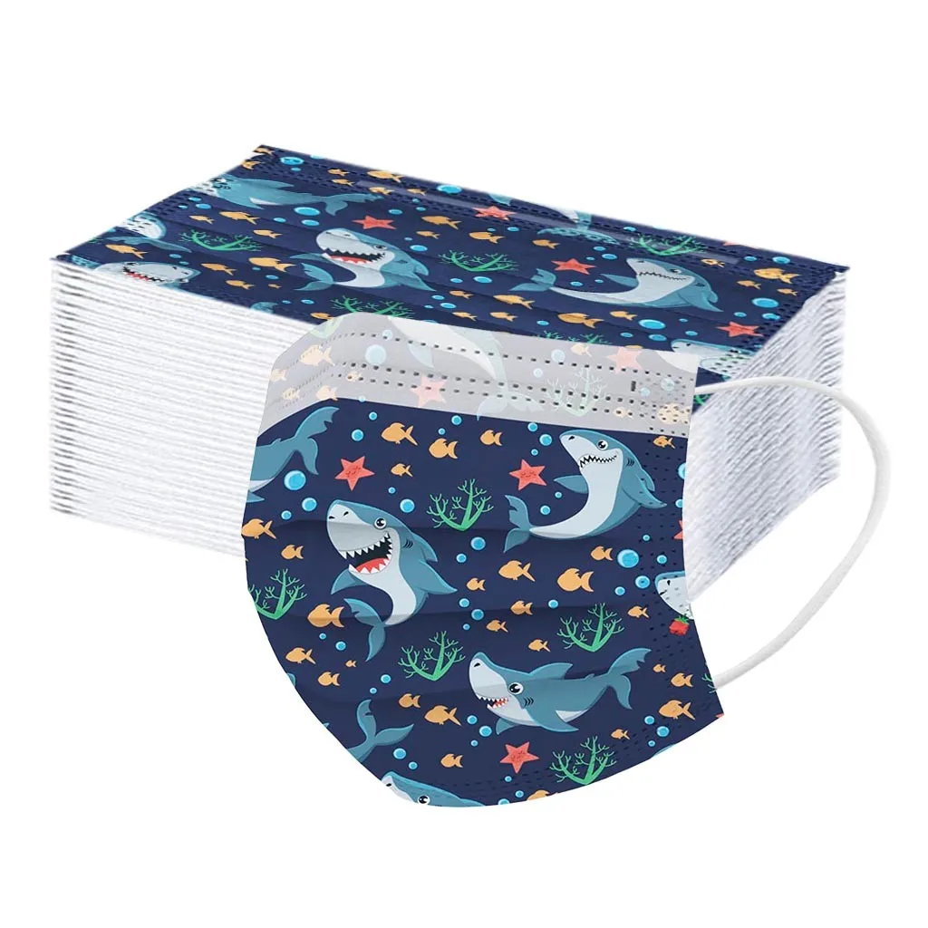 50 шт., детская трехслойная маска для лица с принтом морской акулы