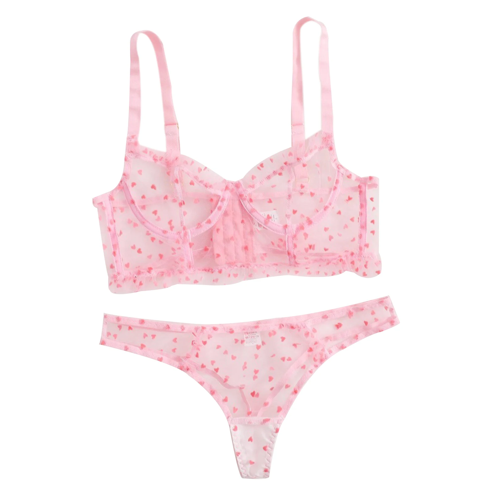 Женский комплект, прозрачный бюстгальтер с рисунком сердца + трусики