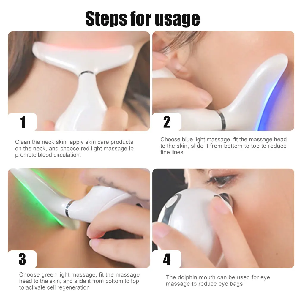 Массажер светодиодный фотонный для лица и шеи, аппарат для омоложения кожи и горячего сжатия, микро-ток, уход за кожей Шеи и морщин