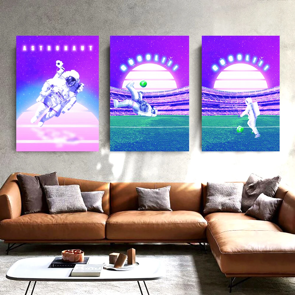 Постер в стиле Vaporwave в стиле 80-х годов, городской пейзаж, ночной автомобиль, астронавт, красочная картина, настенное художественное украшение, кавайное украшение комнаты, Холщовый постер