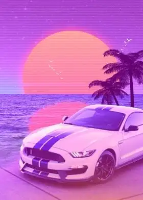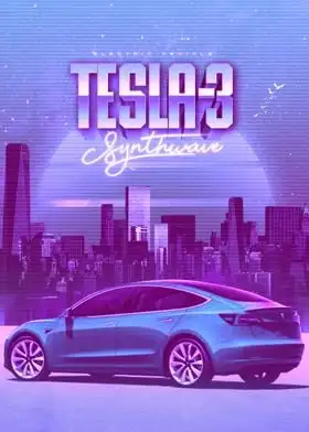 Неоновый постер в стиле Токио для уличных гонок Nissan GTR Synthwav...