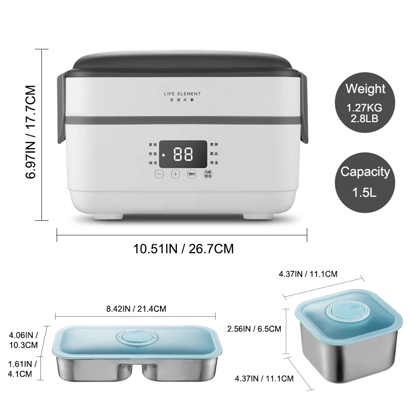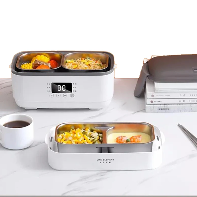 Многофункциональная электрическая мини-рисоварка LIFE ELEMENT 220 л, Портативный Ланч-бокс с 3 контейнерами из нержавеющей стали, в