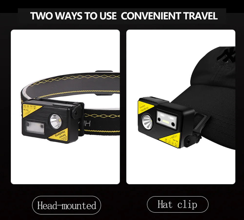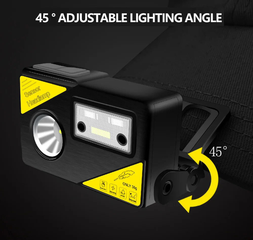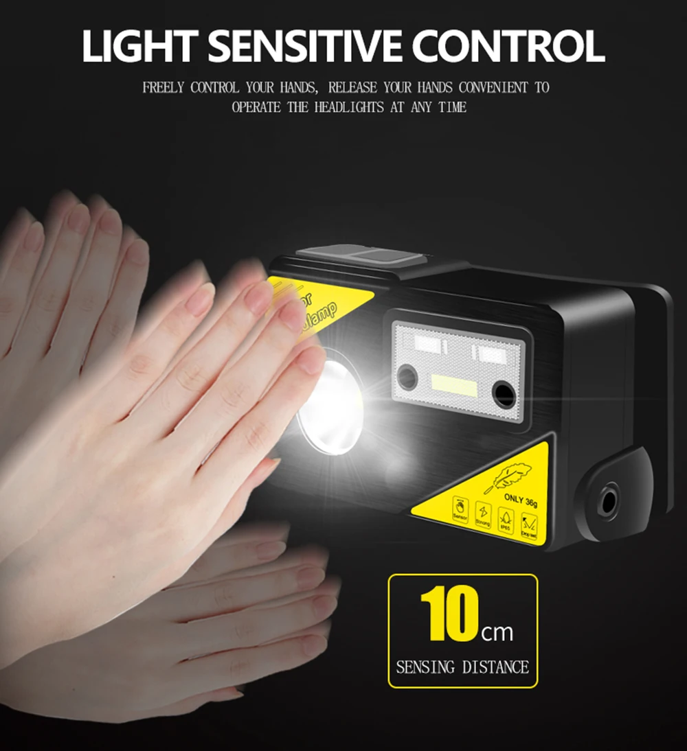 Налобный фонарь с ИК-датчиком, 9000 лм, 18650 мАч