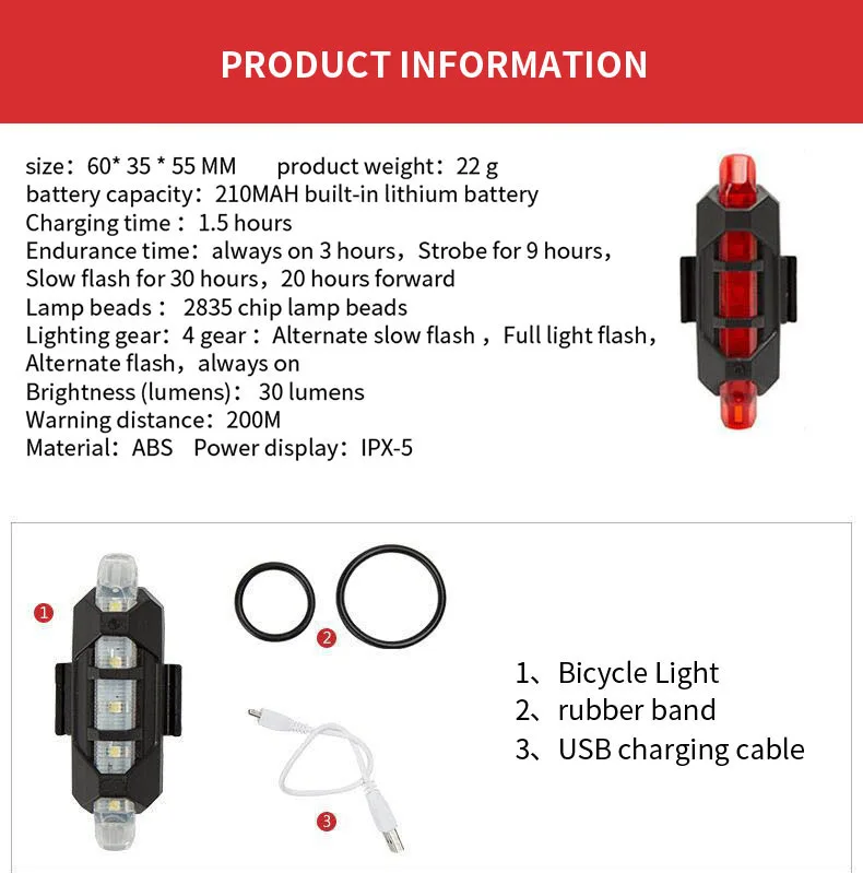 Задний фонарь GRSRXX для велосипеда, светодиодный водонепроницаемый, с зарядкой от USB