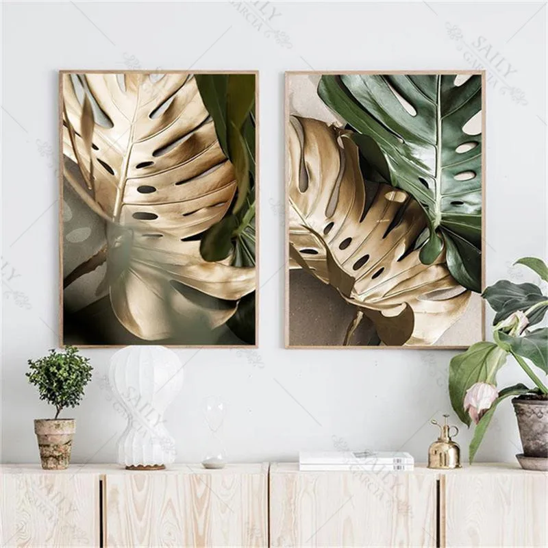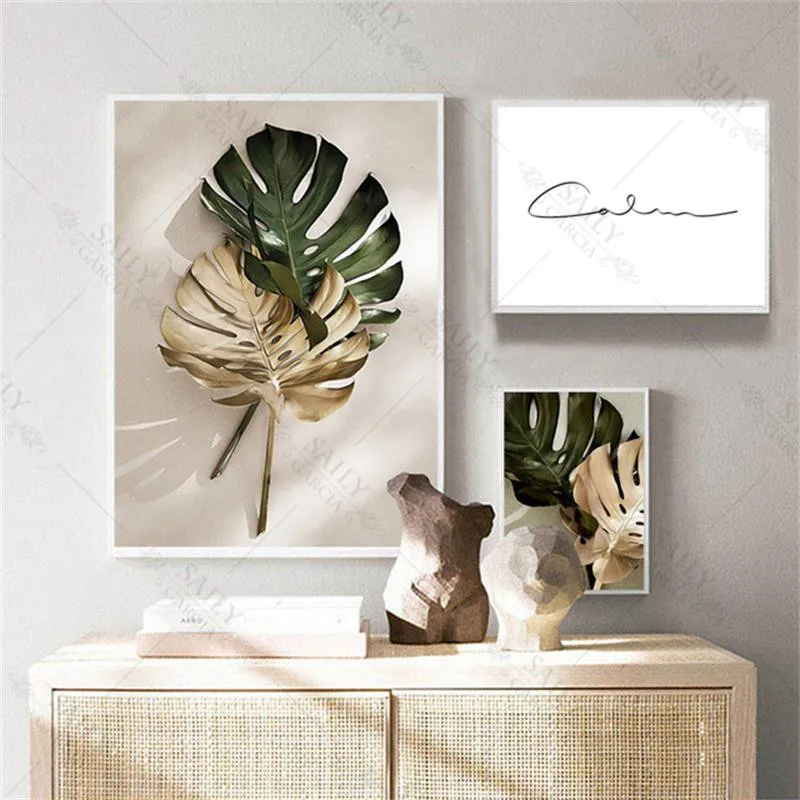 Картина на холсте с золотыми листьями в скандинавском стиле, Декор, плакаты и принты, пальма, Настенная картина для украшения спальни