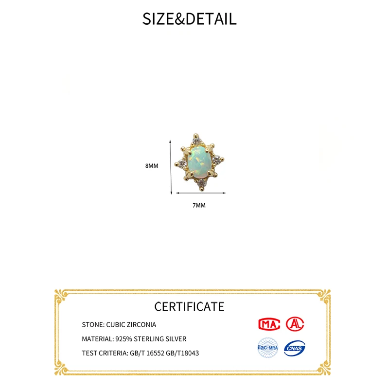 Женские серьги-гвоздики из серебра 925 пробы с фианитом и опалом