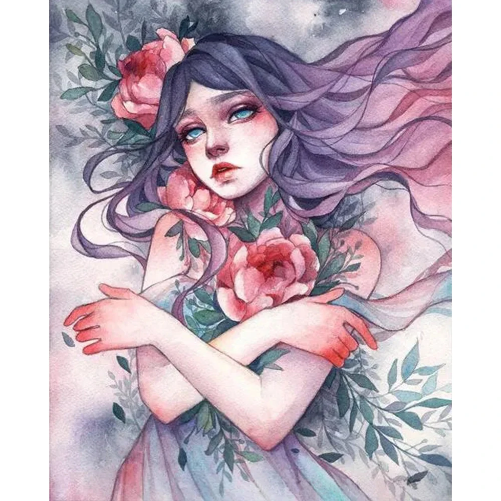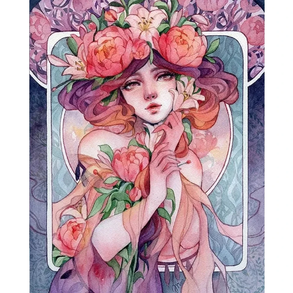 Алмазная вышивка с девочкой и цветком 5d, алмазная живопись, Набор ...
