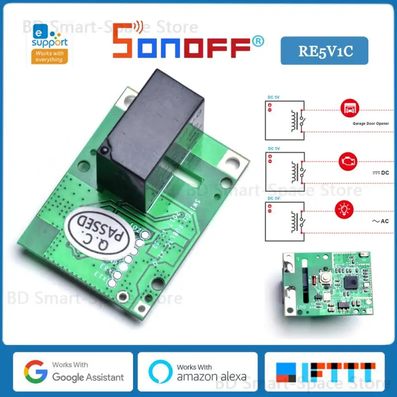 Релейный модуль SONOFF RE5V1C-5V Wifi, устройства дистанционного управления через приложение через Ewelink InchingSelflock Switch, работает с Alexa Google Home