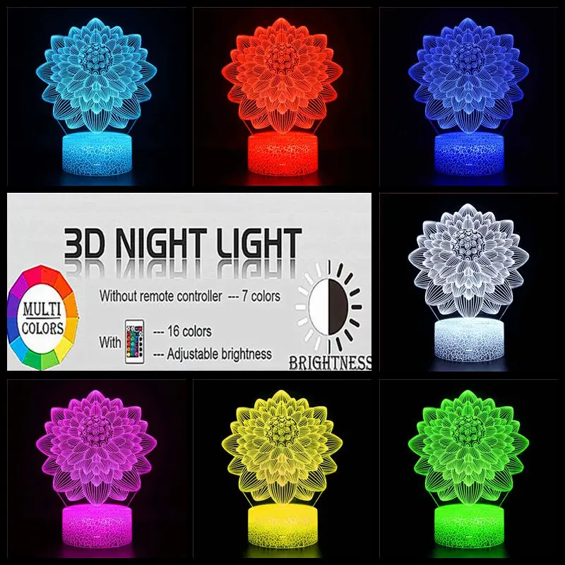 Настольная лампа в форме цветка лотоса, 3D светильник с цветами и сенсорсветодиодный управлением, ночник с питанием от USB, освещение для сна, детские подарки, украшение для спальни