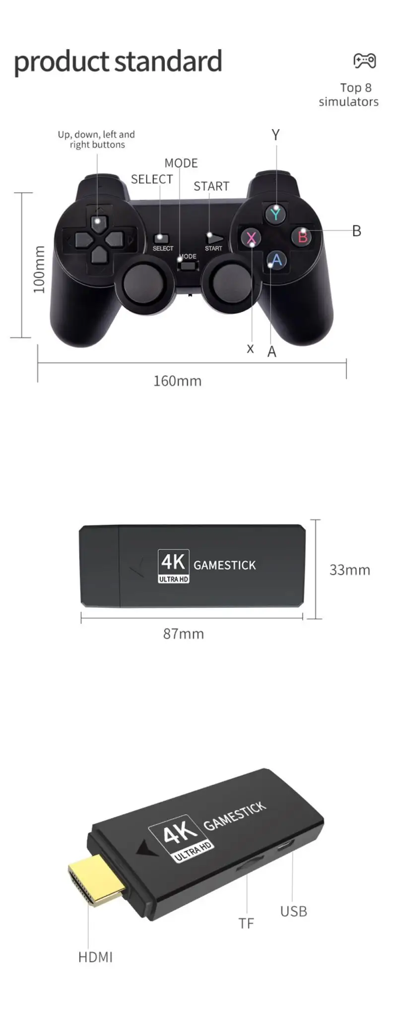 Беспроводные HD игры. Непосредственно подключен к современному интеллектуальному HD телевизору, чип HD может быть передан без потери, и он может быть четко отображен в любом размере.
