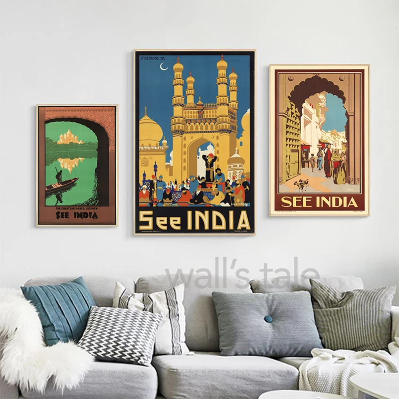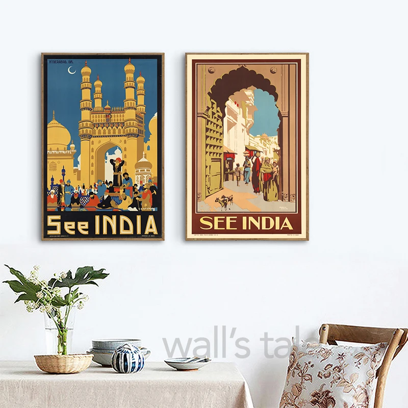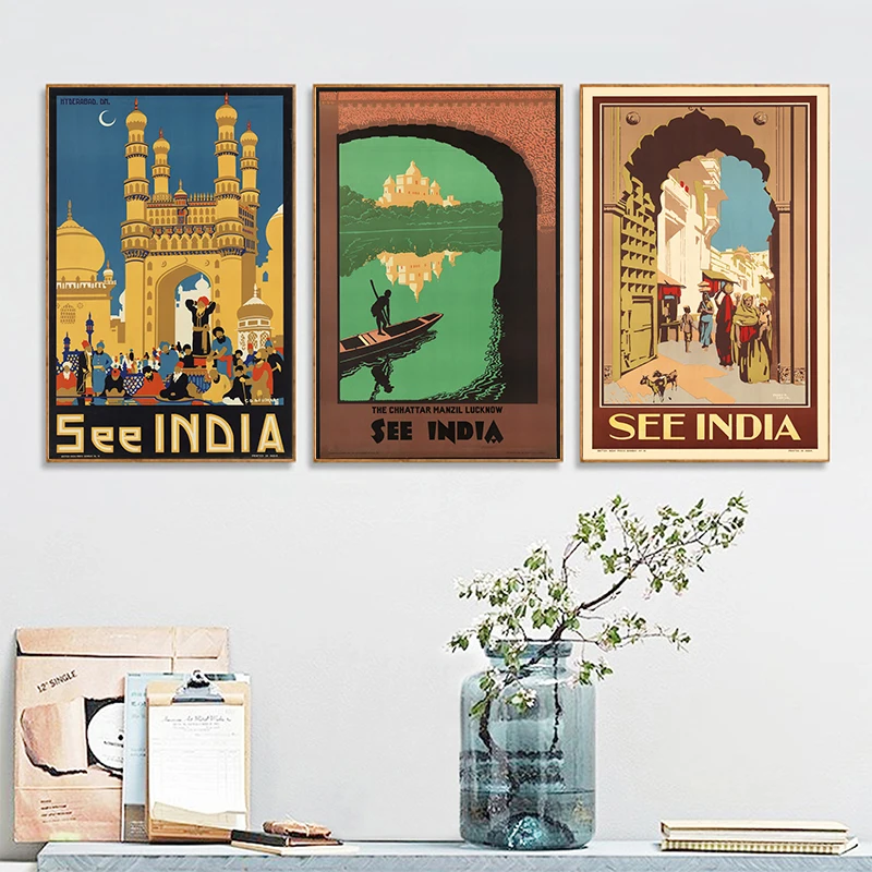 Посмотреть индийский пейзаж настенные картины винтажные туристические плакаты Юго-Восточная Азия холст картина настенные картины декор для гостиной
