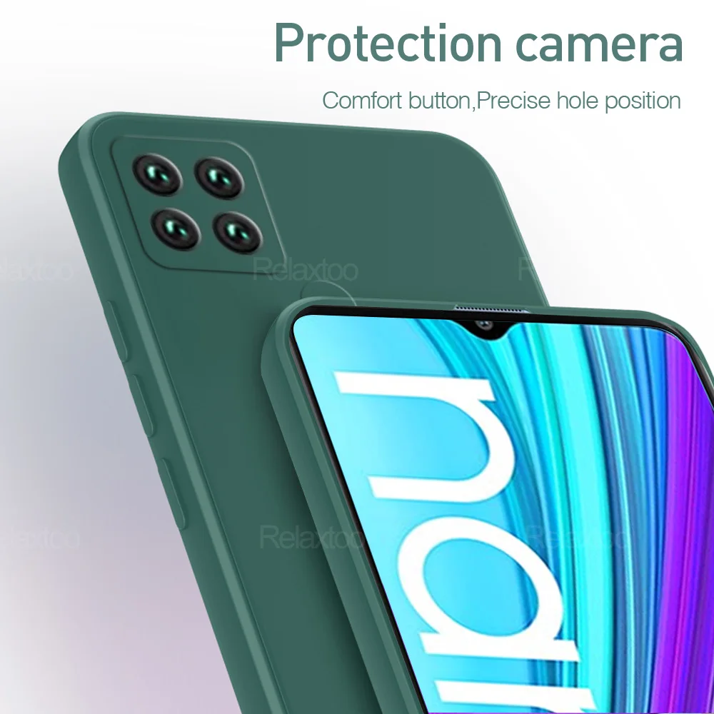 Чехол 2 в 1 из жидкого силикона для камеры Realme C21 C11 2021 C12 ...