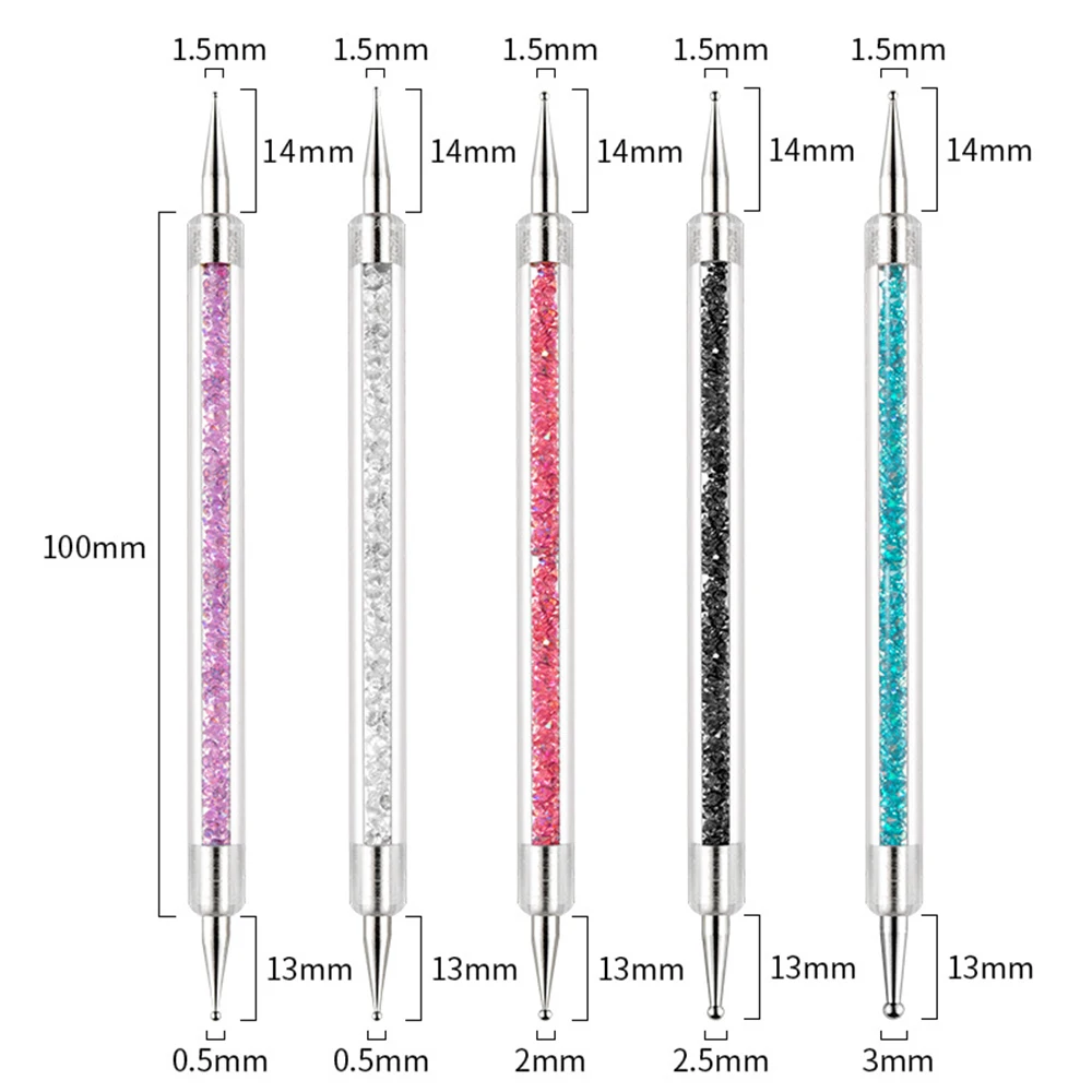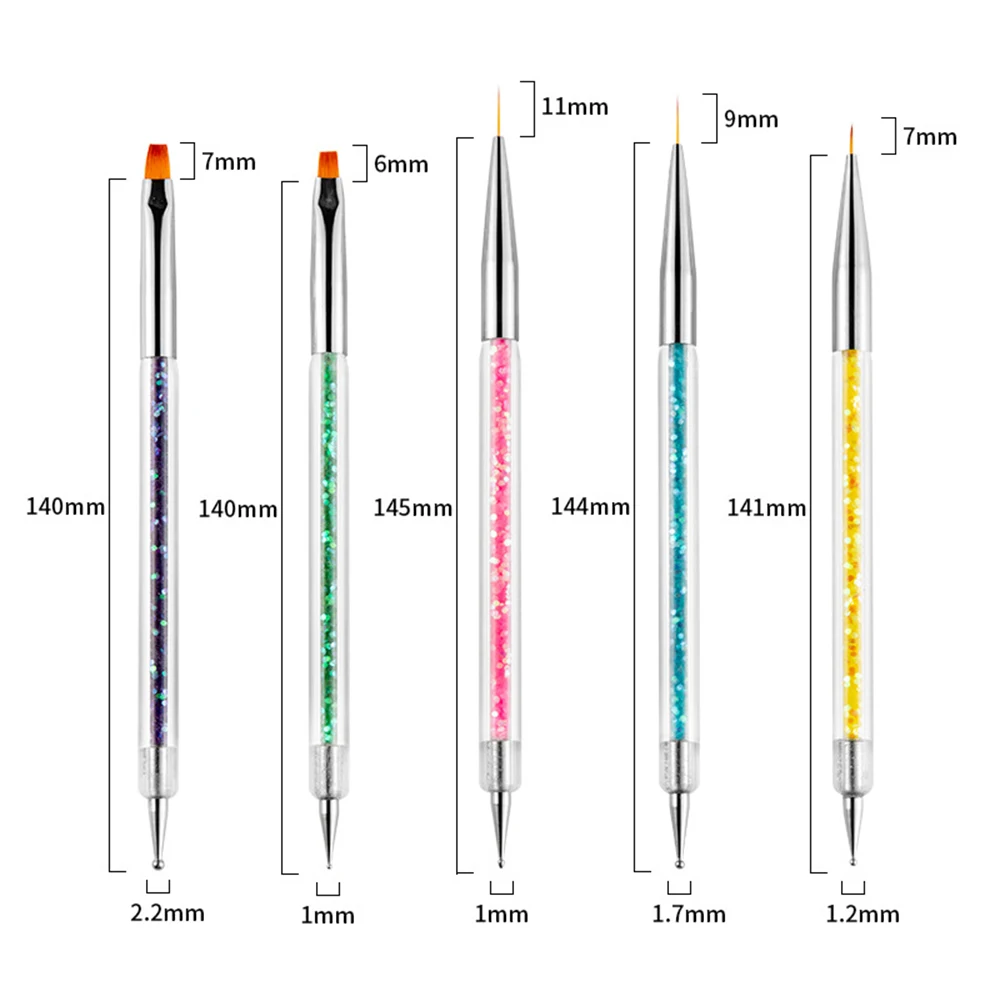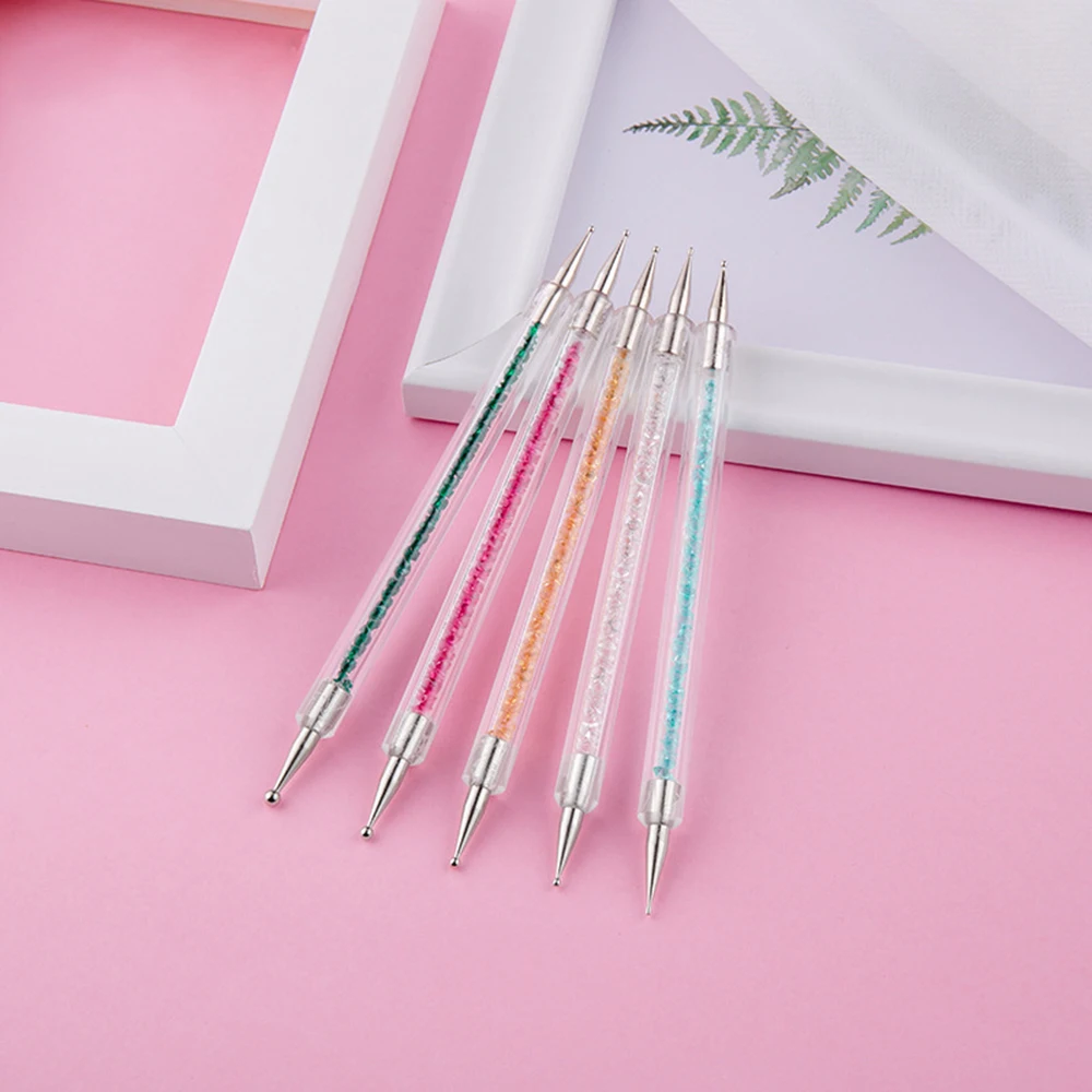 5 шт.компл. ручка для дизайна ногтей с двойным наконечником для сверления точек для рисования ногтей Карандаш для ногтей с блестящей ручкой и кисточкой Набор для маникюра