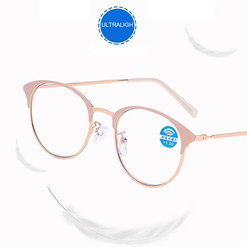+ 1,0, + 1,5, + 2,0, + 2,5 до + 4,0 Круглые ретро розовые очки для чтения с защитой от сисветильник ульсветильник кие пресбиопические очки высокого качества