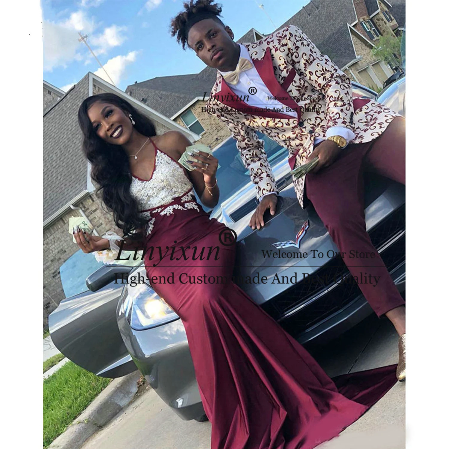 Модные мужские костюмы с бордовым рисунком, облегающий блейзер с за...