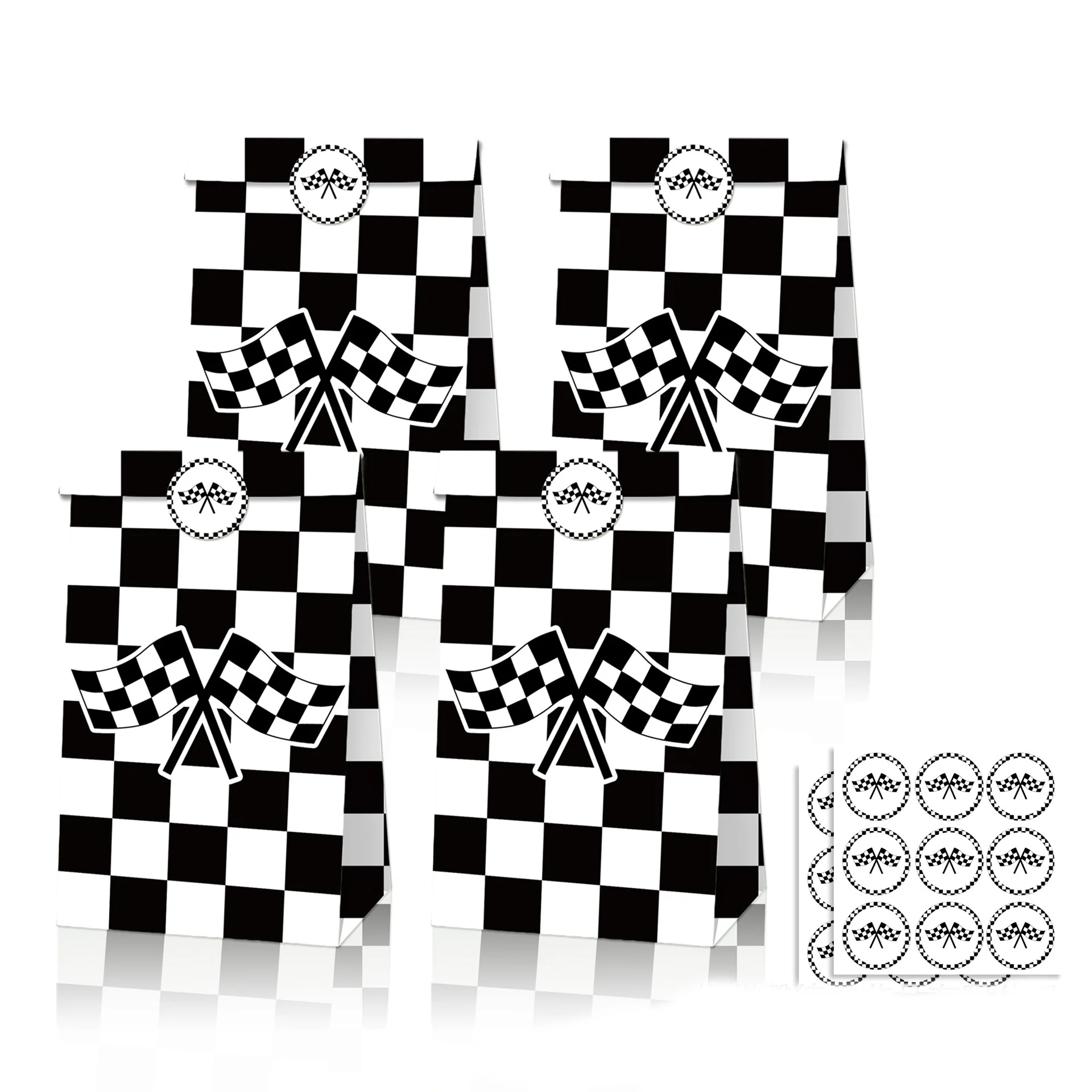Клетчатые гоночные пакеты с наклейкой, черно-белые конфеты, Goodie бумажные подарочные пакеты для автомобилей, подарки на день рождения