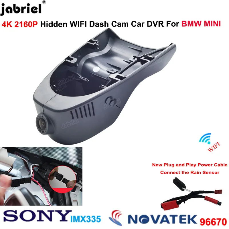 Jabriel 4K UHD 2160P Новый Скрытый Автомобильный видеорегистратор с функцией Plug And Play, Wi-Fi, видеорегистратор для автомобиля, камера для вождения, видеорегистратор Full HD, автомобильная цифровая видеокамера, регистратор с процессором Novatek 96670 с объективом Sony IMX 335 для BMW MINI Countryman f60, для BMW MINI F55 F56 F54 F57 F60, для BMW MINI JCW F56 F54 F57, Для BMW MINI, для BMW MINI CLUBMAN, для BMW MINI JCW 2015 2016 2017 2018 2019 2020 2021 2022.