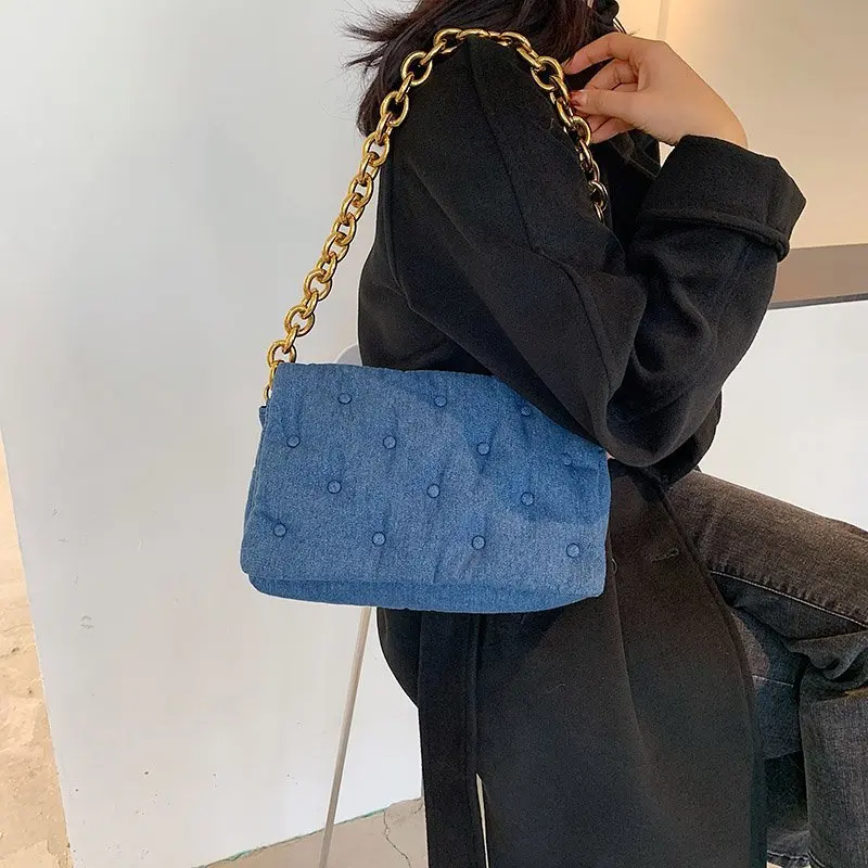 2021 дизайнерские женские сумки, джинсовая женская сумка с толстой ...